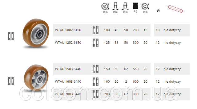 Колесо з алюмінію з поліуретановим протектором, з двома кульковими підшипниками. Робоча температура: -20 °C/+80 °C Твердість протектора 92° за Шором А.